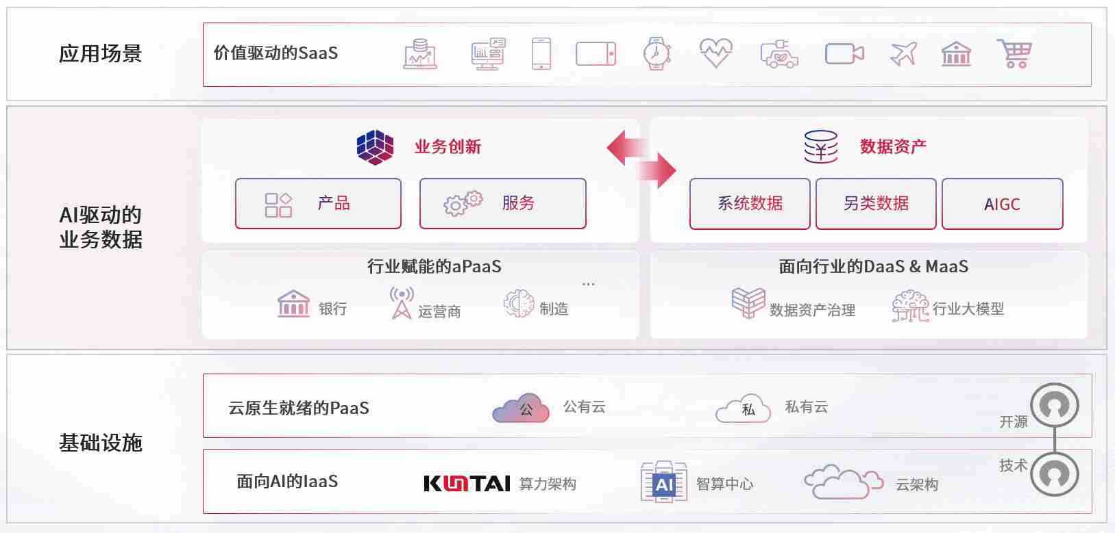 数字时代,,,,围绕企业数字化转型的关键要素,,z6com尊龙数码开创性的提出数云融合战略和技术体系框架,,,,着力在云原生、、数字原生、、AI原生和信创产业上架构产品和服务能力,,,为处在不同数字化转型阶段的快消零售、、汽车、、、、金融、、、医疗、、、、政企、、、教育、、运营商等行业客户提供泛在的敏捷IT能力和融合的数据驱动能力,,构建跨界融合创新的数字业务场景和新业务模式,,,助力企业级客户建立面向未来的核心能力和竞争优势,,,,全面推动社会的数字化、、、智能化转型升级。。